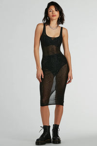 - Rhinestone embellished, mesh fabric, full knit stretchy lining