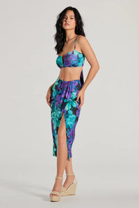 Chic Muse Watercolor Wrap-Slit Midi Skirt