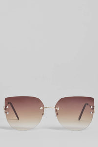These fab oversized cat-eye sunglasses will be your new fave trend to style up! They feature a cat-eye rimless design, a thin metal nose bridge, thin metal arms with a front cutout, rubber nose pads for support, and gradient-tinted lenses with stud accents. Pair with hoop earrings and a mini handbag for an everyday 'fit.