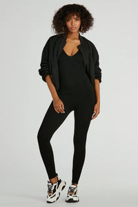 Experience the perfect basic catsuit for building your outfit! Featuring a flattering V-neckline, adjustable straps, seamless rib knit fabric, seam bodice detailing, and skinny-leg design, this catsuit is perfect for coffee runs or lounging. Complete the look in a denim jacket and sneakers!