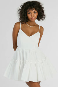 Show off an adorable flair in this tiered ruffled skater dress at graduations or parties! Made with a lightweight cotton woven fabric, it features a knit underskirt lining with added tulle for that chic voluminous vibe. The dress is shaped with a sleeveless V-neckline, adjustable spaghetti straps for a customized fit, and a smocked-back design for added stretch. The high waist seam flows out to a tiered ruffled skater skirt with a flirty fit and flare silhouette. Complete your look with espadrille wedges!