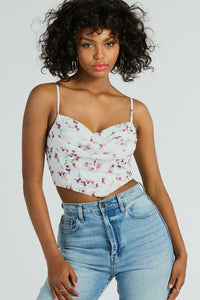 Easily Beloved Satin Lace-Up Floral Corset Top