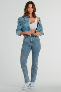 Glam Girlie Rhinestone High Waist Straight-Leg Jeans