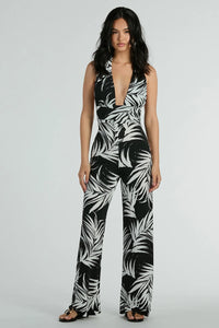 Majorly Tropical Plunge Halter Wide-Leg Jumpsuit