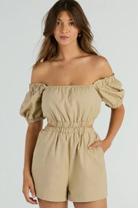 Day Time Adventure Puff Sleeve Cutout Linen Romper