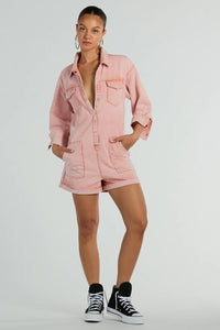 Road Trippin' Long Sleeve Cuffed Acid Denim Romper