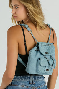Get ready to rock your look with this quilted denim mini backpack perfect for festivals, concerts, or theme parks! Made with quilted denim material, this backpack is both stylish and functional. The adjustable shoulder straps ensure a comfortable fit, while the front flap pocket and spacious interior keep your essentials organized. Complete the look with a basic bodysuit and jeans!