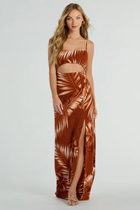 Island Breeze Tropical Cutout Slit Maxi Dress