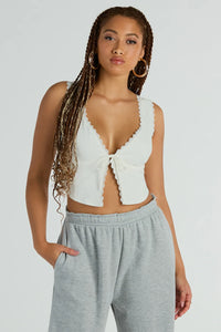So Fresh Lace-Trim Linen Cropped Tank Top