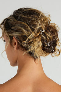 Express your glamorous side with this set of five gorgeous hair pins with rhinestone leaf decor! Complete the look with earrings.