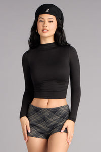 A soft little staple with just the right amount of shape—this brushed knit mock-neck crop top keeps things sleek with side ruching that hugs in all the right places. It’s the perfect throw-on piece when you want something comfy, cute, and low-effort that still looks polished.