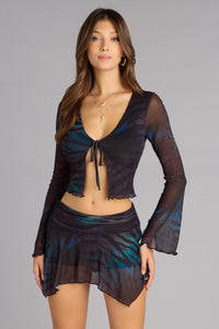 Go bold or go home. This zebra print mesh crop top serves major wild streak with its tie-front detail and sheer long sleeves—perfect for layering or making your next ‘fit pop. Style with the matching mini skort.