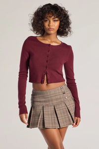 Cozy and charming, this knit cardigan offers a classic design with a button-down front for versatile styling options and a cropped hem.