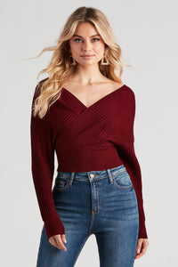 Live the glam life in this off-the-shoulder asymmetrical crop top with a chic foldover accent and cozy long sleeves on rib knit fabric. Complete the look with high-rise bottoms.