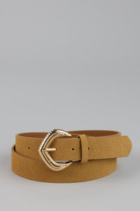 Your jeans just found their upgrade. This textured faux leather belt, featuring an etched buckle, adds the perfect mix of polish and cool-girl detail.