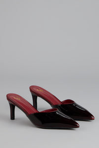 Serving sophistication with a side of attitude. These patent mules feature a sleek pointed toe and a sculpted heel that takes you from dinner to downtown without missing a step.