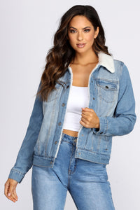 Beat the cold weather blues with this trendy denim jacket. With adorable sherpa trim, you'll stay warm and look cute for the chiller months!