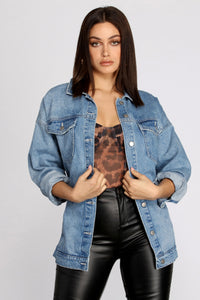 Spotted from afar, a mf trendsetter! Get your look on track when you throw on a faux fur leopard print denim jacket!