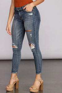 Spill the tea girl in these must have skinny jeans! They feature a high rise waist, a single button with zipper closure, a traditional five pocket with belt loop design, a skinny leg fit with tapered ankle and heavy distressed detailing. Jeans are composed of a denim fabric that offers a form hugging fit with a moderate stretch.Style Number/Barcode: 06602-1692