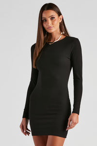 This ribbed knit mini dress is a basic must-have that needs to be in your wardrobe! It features a classic crew neckline, long fitted sleeves, and a short, form-hugging fit. The ribbed knit fabric offers a moderate stretch. Style with hoop earrings and knee-high boots.