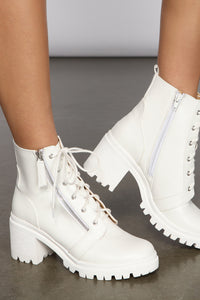 These booties are part edgy and part chic to nail down your everyday outfits. The booties feature a lace-up front, an outer zipper closure, an almond toe, and a lug sole. Complete your look with matching separates and hoops.
