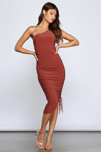 Eve One-Shoulder Ruched Midi Dress