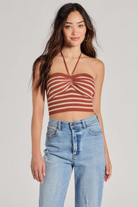 Trendy In Stripes Halter Rib Knit Crop Top