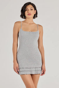 The knit mini dress features a sleeveless scoop neckline accented with a dainty rosette detail for an adorable touch. The tiered ruffled mini-length hem and bodycon fit add a flirty feel while highlighting your curves.