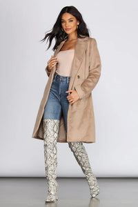 Designed with a collared neckline, and a long line hem that hits right at the knee, long sleeves, slanted pockets, and a double button closure. This Trench is fully lined, and what we love about it is that it is lightweight enough to wear on a chilly night, play it casual or dress it up in a classy fashion!Style Number/Barcode: 06201-0039