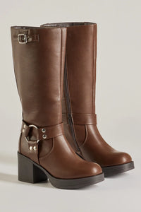 Chic Edge Under-The-Knee Moto Platform Boots