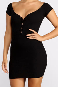 Felt Cute Button Off Shoulder Mini Dress