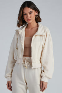- Cropped, fitted silhouette