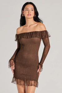 - Ruffled lace off-the-shoulder neckline