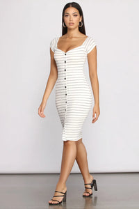 Stripe It Down Ribbed Button Down Midi Dress