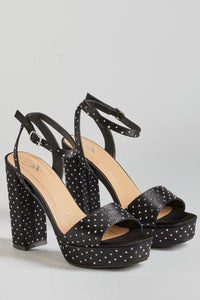 Dazzling Moments Rhinestone Platform Satin Block Heels
