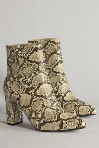 So Fierce Faux Leather Snake Print Ankle Booties