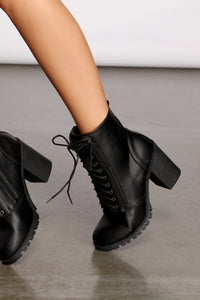Get ready to make major trendy moves in these edgy combat booties! They feature a lace-up design with a sturdy block heel to elevate your look. Pair these faux leather booties with distressed mom jeans to level up your everyday 'fit.