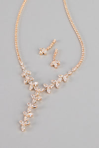 This CZ leaf set brings that delicate, glowy moment — a cascading vine necklace paired with coordinating drop earrings that shimmer with even the smallest movement. It’s the perfect finishing touch for evenings that call for soft glam.