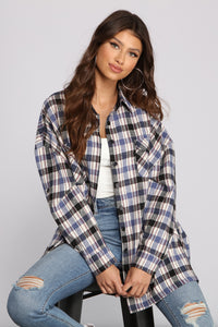 Keep it preppy and chic with a shacket that is perf to layer up with! The shacket features a plaid print, a collared neckline, a multi-button down front, chest pockets, long roll up sleeves, side pockets, and a mid-thigh length. Complete look with a basic tee and jeans for that laid-back look.