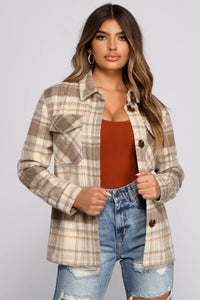 Bundle up in this adorable cozy plaid shacket! It features a collared neckline, long sleeves with single buttons to cuff, a complete button-down front, a relaxed and comfortable fit, and a soft faux fur lining. Layer this trendy shacket over a basic bodysuit and pair it with denim and combat booties for a casual everyday look.