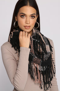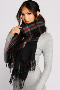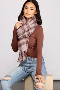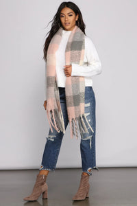 Stay cozy while keeping your look chic by layering on this blanket scarf! It features a classic allover plaid print, fringe detailing and a soft to the touch fabric. Pair this scarf over a knit midi dress for a stylish fall 'fit.