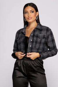Yes babe, we're all about the plaid trend this season! Style up this cropped jacket for a casual-chic look. It features a collared neckline, long sleeves with snap button detailing, a complete snap button-down front, and a cropped fit. Pair this woven jacket with high rise jeans for a cute 'fit.