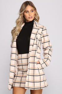 Stun in a classic plaid coat that brings sophistication to your look! The coat features a trendy plaid print, a collared neckline, a single-button down closure, two large pockets, and a long length. The coat is composed of a soft to the touch brushed knit fabric that offers a relaxed fit. Complete look with a casual top, jeans, and thigh high boots.