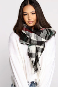 Cozy Cutie Plaid Frayed Blanket Scarf
