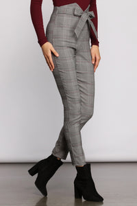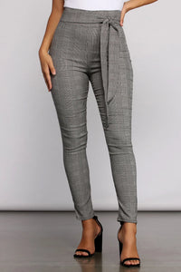 Look posh and poised in these chic plaid tie waist skinny pants! They feature a high rise waist with a tie front detail and a flattering skinny leg fit. Wear them to the office and you can easily transition them for happy hour afterward. Pair with a cute blouse and classic block heels.