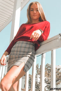Showcase your sweet and chic side in this adorable plaid mini skirt! Featuring a flattering high rise waist and trendy side slit, this skirt would pair perfectly with some heeled booties. A definite must-have for a cute daytime date look.
