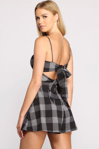 Check you out in this adorable plaid skort romper! Featuring a chic plaid print and an overall fitted silhouette, this romper is a must to add to your fall wardrobe. Paired with some chunky sneakers, you'll be ready for a night out with the girls.