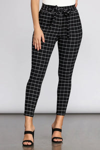 Own your look in trendy plaid babe! This pair of paper bag skinny pants is calling your name!