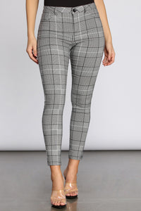 High Rise Plaid Skinny Pants