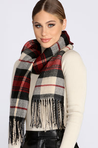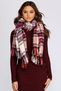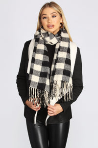 Keep on trend with pretty plaid! The scarf features a buffalo plaid pattern throughout and a fringe detailed trim.